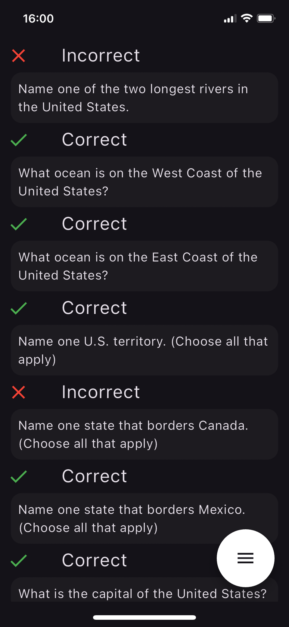 Unlock the power of personalized revision with our 'Refine and Retest' feature, tailored to enhance your learning experience. After each quiz, not only will you see your score, but you'll also get a detailed breakdown of which questions were mastered and which ones tripped you up. Want to focus solely on improving your weak spots? Opt to retake the quiz with just the questions you missed, or if you're feeling ambitious, reset and tackle the entire exam again. With the added ability to filter questions by correct or incorrect answers, 'Refine and Retest' offers a customizable study session that adapts to your unique learning path. Embrace this targeted approach to study smarter, not harder, and watch your accuracy soar as you prepare to ace your citizenship exam.